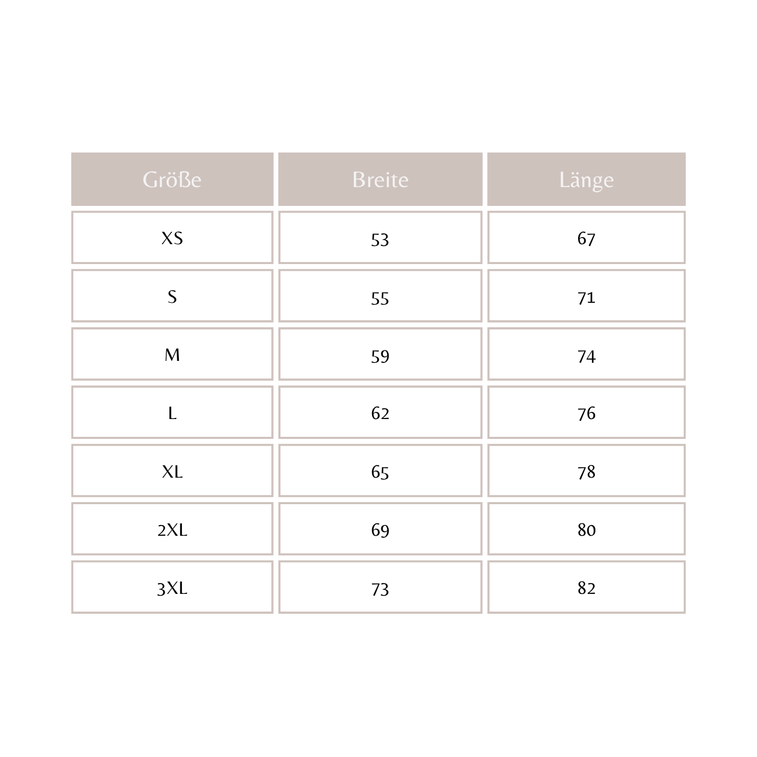 Die detaillierte Größentabelle hilft dir, die perfekte Passform zu finden.